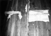 Wagon shop before restoration. Shows window, vertical board and batten construction