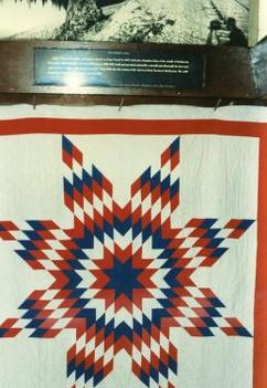 Riding in wagon are Bernice K. and Janet Bailey. Guiding wagon are Ken Light and Bob Volkmer. Driving pickup is Jane Light.