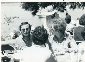 Milt Davidson, Bob Volkmer, Ken Light, Jane Light, Janet Bailey with Arline Brightman and Patricia Laughlin in shadows.