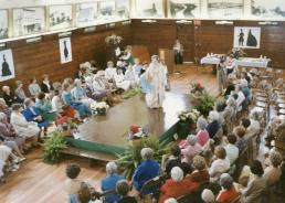 CWA students performing "community service" by clearing blackberry vines and other vegetation surrounding church monument.